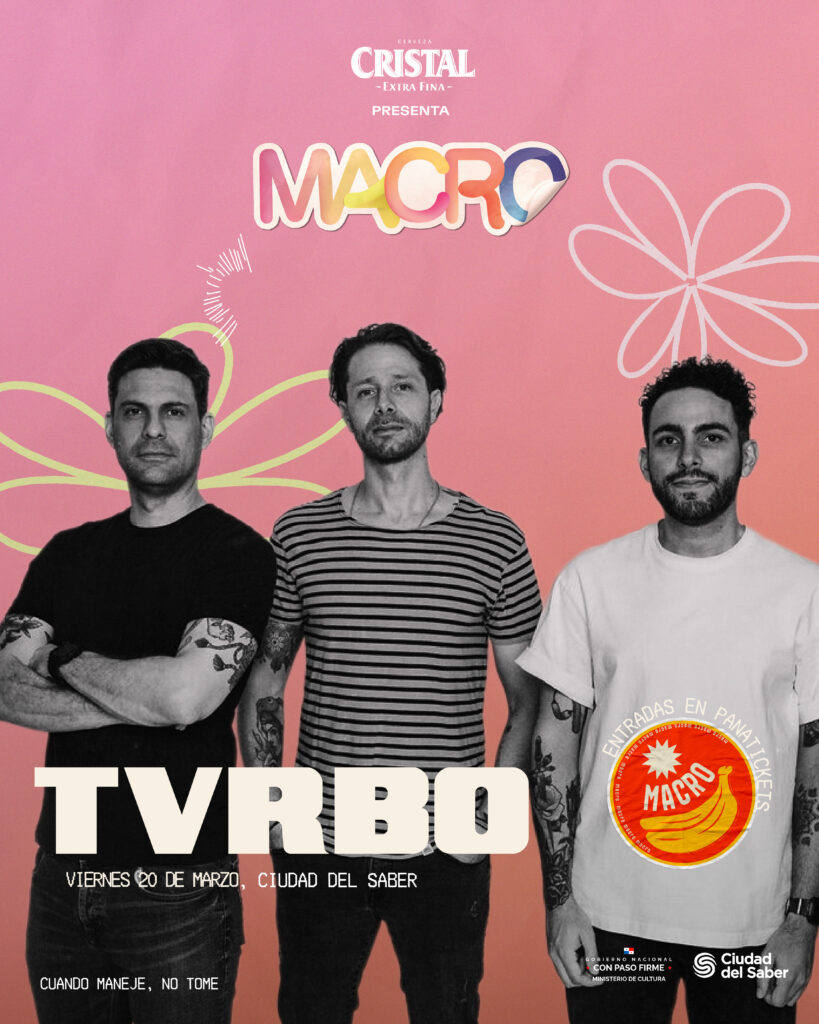 TVRBO es un proyecto musical panameño que se mueve entre el pop alternativo, la electrónica y el indie, destacándose por una propuesta sonora moderna, energética y cargada de identidad. Su música combina beats electrónicos, sintetizadores y melodías pegajosas con una estética visual y conceptual contemporánea. La banda apuesta por un sonido global sin perder el carácter local, posicionándose como una de las propuestas más innovadoras dentro de la nueva escena musical panameña.